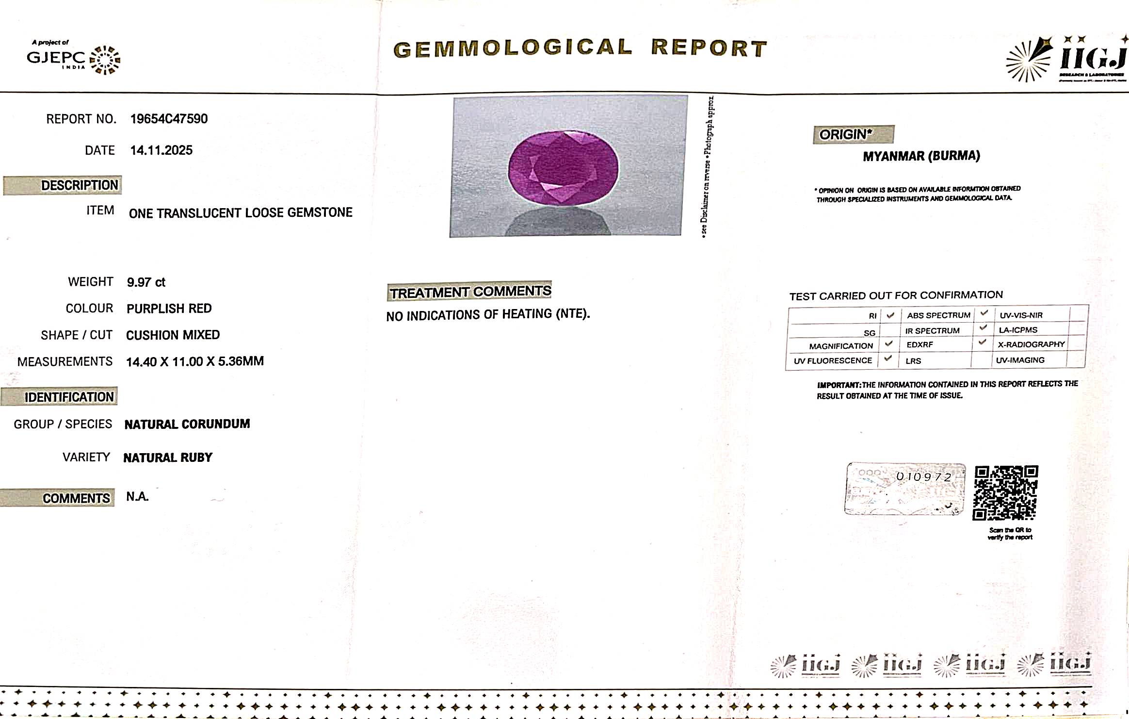 BURMESE RUBY- 9.97 CARATS 11 RATTI
